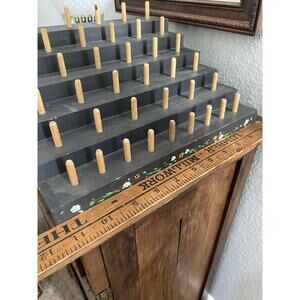 Vintage Wooden Thread Bobbin Rack Spool Holder Handmade Hand Painted Sewing Room