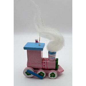 This charming vintage ornament captures the nostalgia of yesteryears. Crafted from wood, it features a whimsical train with a delightful Santa face and a cotton smoke cloud. The pastel colors evoke a sense of timeworn charm, making it a delightful addition to a classic holiday decor theme.