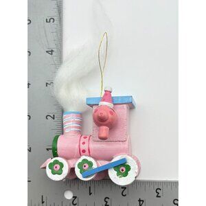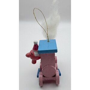 Vintage Wooden Train Christmas Ornament Santa Face Cotton Smoke Hand Painted