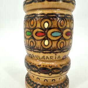 Vintage Wooden Turned Mortar & Pestle Primitive Farm Kitchen Tool Large Bulgaria