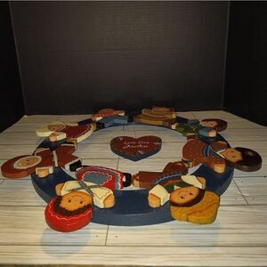 Vintage Wooden Wall Decor Children Of The World Love One Another 19½in Round. Has some wear from age and storage. Sold as is.