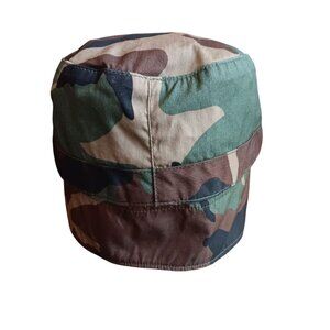 Vintage Woodland Camouflage Cotton/Nylon Military Cap Size 6 3/4 With Ear Flaps