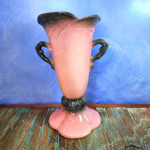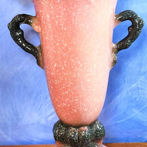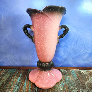 Vintage Woodland Hull Pottery Vase W18 Gray/Pink Speckled 2/ Handles 10.5" tall