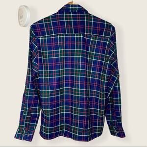 Vintage Woodland Navy Heavy Plaid Flannel Shirt Jacket Button Down Shirt.
