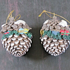 Vintage Woodland Pinecone Ornament Raccoon and Rabbit Babies Lot of 2
