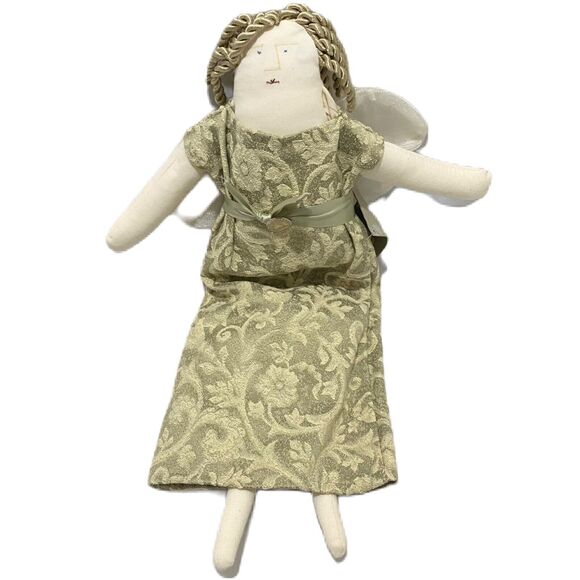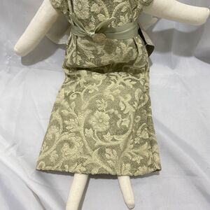 Vintage Woof & Poof 2000 Angel Green Tapestry Brocade Dress 18 In With Paper Tag. Very clean and new condition. No major damage or stains that we saw at all. May have Some light wear from storage but still in good unused condition.