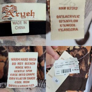 Vintage Wool Angora Long Puff Sleeve Tea Length Dress M Retro 70s Brown Floral