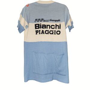 Vintage Wool Bianchi Piaggio Blue & White Cycling Jersey Back Pockets Size 6