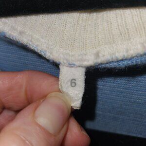 Condition: Good with minor flaws. One small stain on the front. You have to really look for it. See picture # 8. The right sleeve has been repaired. Please see my pictures.