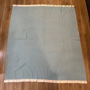 Vintage Wool Blanket Mid Century Chatham USA Green Beige 72 x 83 Bedspread
