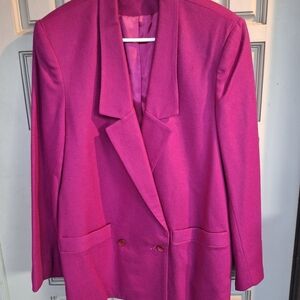 Vintage Wool Blazer Magenta Sz12 Lined Dbl Button Closure Pockets Never Worn