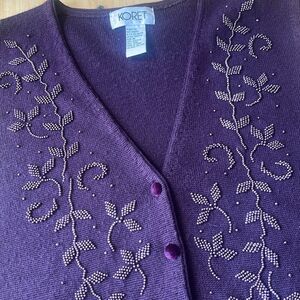 Vintage Wool Blend Beaded Sweater Medium Royal Purple