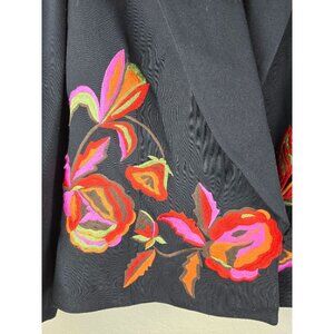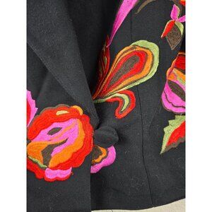 Vintage Wool Blend Black Boho Embroidered Floral Blazer Sz M/40 By Atakol