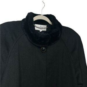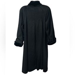 Vintage Casual Corner Wool Blend Black Long Heavy Coat Warm Winter Coat Faux Fur Trim Collar Chesterfield