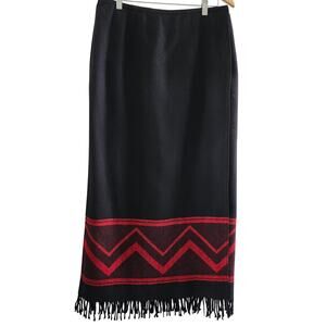 Vintage Wool Blend Blanket Wrap Skirt Size 10 Jones New York Country Black & Red