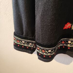 Vintage Wool Blend Cardigan Sweater Embroidered Flowers Christmas Black Red Zip
