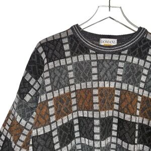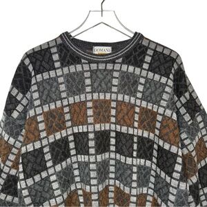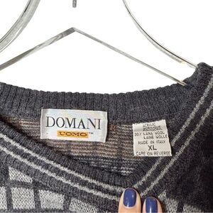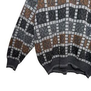 Vintage Wool Blend Grandpa Gray Checker Board Oversized Crew Neck Sweater Sz XL