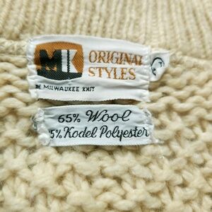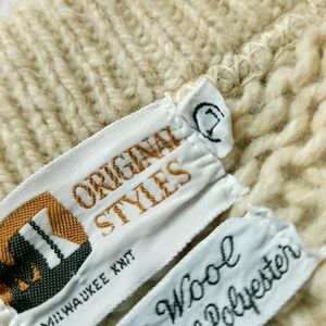 Vintage Wool Blend Knit Chunky Cardigan Original Styles Sz Large. Button front, plastic buttons, tan color. Has some discoloration spots (pics). May run a little smaller since it's vintage. Flat measurements approximately