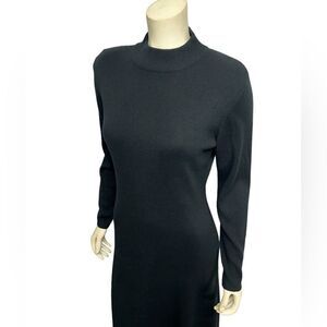 Vintage Wool Blend Long Sleeve Black Midi Dress Winter Ankle Length Funeral Nina Charles for Kasper with Shoulder pads Warm Winter Dress Wool