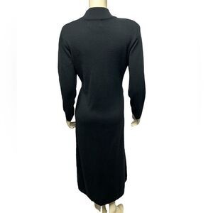 Vintage Wool Blend Long Sleeve Black Midi Dress Winter Ankle Length Funeral