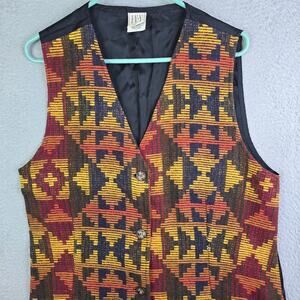 Vintage Wool Blend Suit Vest Aztec Men's Large Red Yellow Southwestern Western