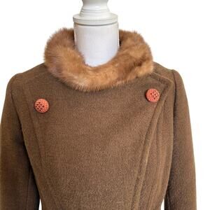 Vintage Wool Blend Swing Coat Fur Collar Brown Orange Lined No Size Wrap 50s 60s