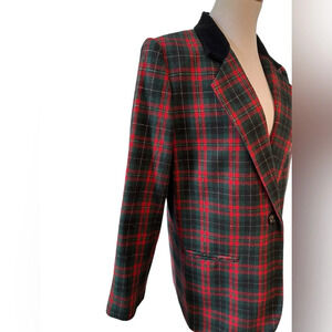 Vintage Wool Blend Tartan Plaid Velvet Collar Sag Harbor Single-breasted Blazer