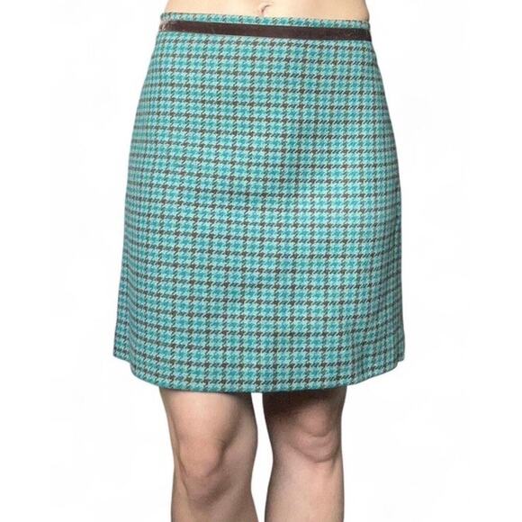 Vintage Wool Blend The Limited Blue Brown Plaid Lined Short Skirt Sz 4 30” Waist