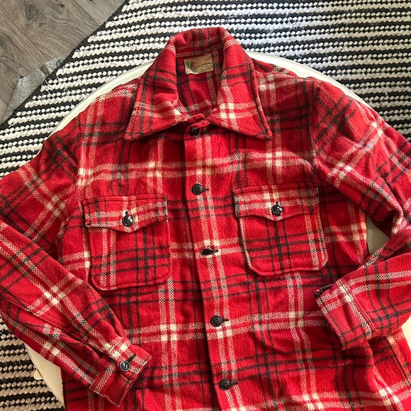 Vintage Wool Buffalo Check Red Black Plaid Men's Button Front Jacket