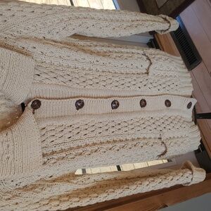Vintage Wool Cable Knit Cream Leather Wrapped Sz. M Cardigan