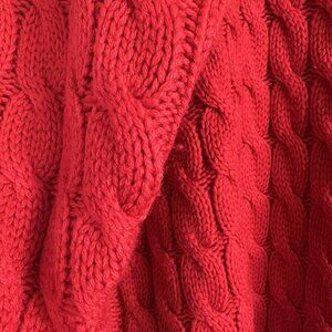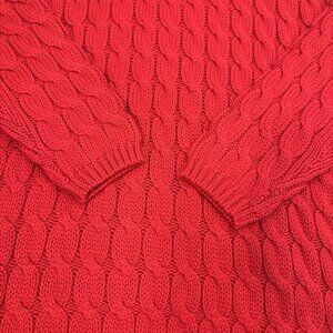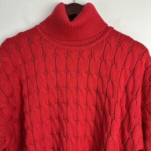 Vintage Wool Cable Knit Sweater Turtleneck Womens Small Red Fisherman Old Money