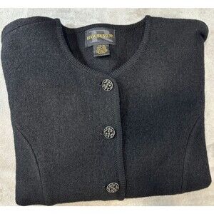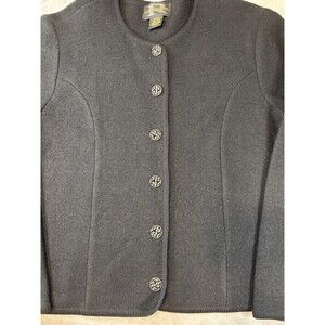 Vintage Wool Cardigan Jacket Women M Black Button Front Minimalist Old Money