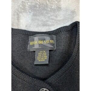 Elegant vintage Requirements 100% Wool cardigan jacket in classic black. This piece features a structured silhouette, ornate metal buttons, and refined minimalist style perfect for quiet luxury, office dressing, or building a timeless capsule wardrobe.