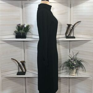 Vintage Wool Cashmere Black Turtleneck Midi Dress Vest Set S