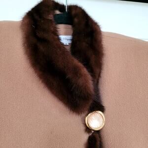 Vintage Wool & Cashmere Coat Mink fur beige coat Le Crystal