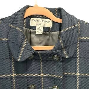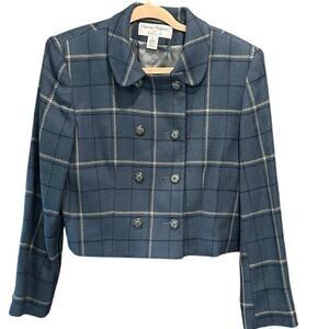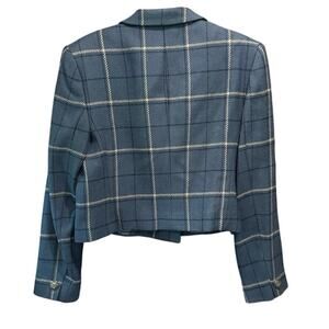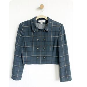 Vintage Wool Classic Preppy Blue Green Plaid Double Breasted Crop Blazer Large