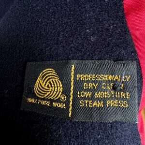 Details: Classic vintage 1950's-60's Florence Travis navy 100% wool pea coat with classic nautical elements; notched collar, epaulettes, faux brass nautical buttons and chain, red lining, and 3 front pockets. Good quality heavy weight wool.