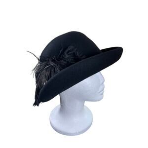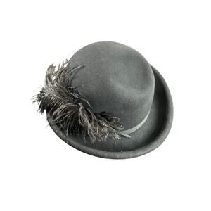 Vintage- Wool- Feather - Bowler Hat- Doeskin Michelle- made in USA chic
