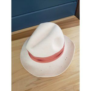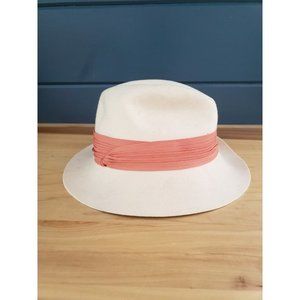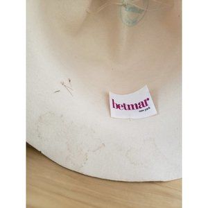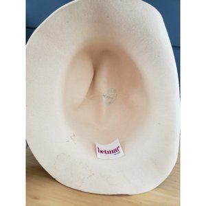 This pretty hat is in good condition though the brim is a bit misshapen after years in storage, and there is some very mild staining under the brim that could probably be cleaned by someone with better hat knowledge than I. There are some very small black dots on the Top of the brim.
