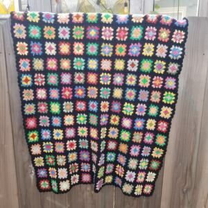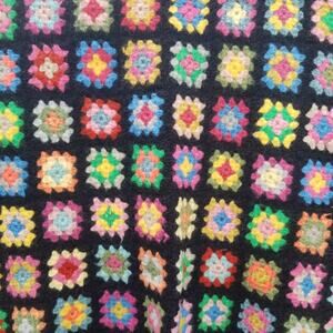 Vintage Wool Granny Squares Throw Blanket
