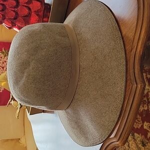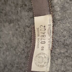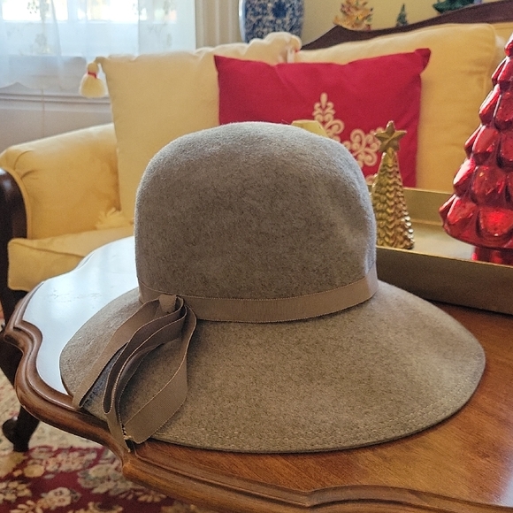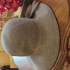 Vintage grey wool hat. Grey ribbon, tied on side. I am not sure of the date, would be between the 1930's to the 1980s looking at inside label.