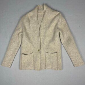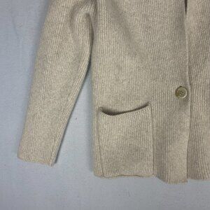 Vintage Wool Knit Ribbed Women's Sweater Blazer Top Jacket One Button Pockets