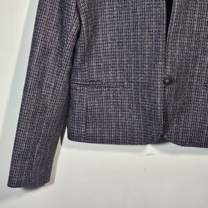 Vintage Wool Lee David Made in Japan Blazer. Crop length. In perfect condition. Two pockets are still stitched up. One button closure. Lightly padded shoulder. Brown, gray, green and blue blend d.