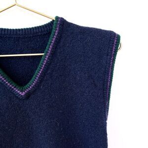 Vintage Wool Navy Blue Crest Wool Sweater Vest