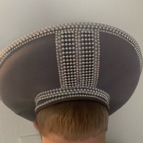 Vintage! 100% wool, New York model pearl beaded rhinestone, studded fashion hat from the 50s. This hat is in perfect condition which is impressive because it’s very old! It has a tiny piece of elastic that goes under your chin. This is a rare find!