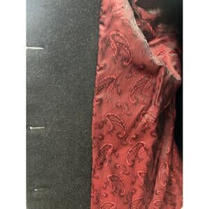 Authentic vintage Anne Klein charcoal wool overcoat, beautifully tailored and fully lined in a luxe red paisley jacquard. Made in Slovakia and tagged a women's Petite 4P, this structured coat features a notched collar, five-button front closure, and elegant four-button cuffs. Crafted from 100% wool with a smooth, warm lining (51% nylon / 49% acetate), this coat is built for stylish warmth.
