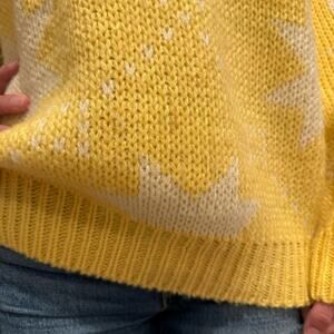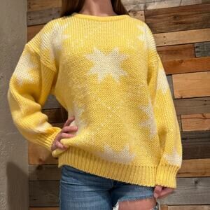 Vintage Wool Retro Bright Yellow Star Grandpa Grannycore Sweater Crew Neck Size L