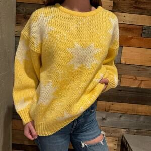 Vintage Wool Retro Bright Yellow Star Grandpa Grannycore Sweater Crew Neck Sz L