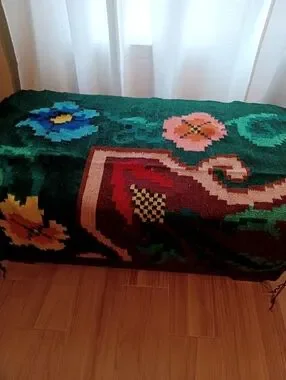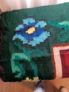Possible Swedish kilim area rug This rug show signs of wear it can be refurbished with a matching fringe