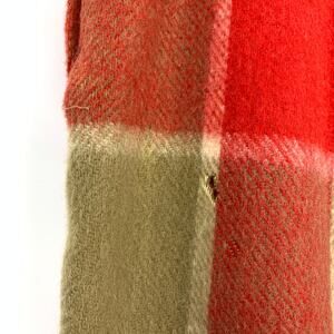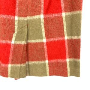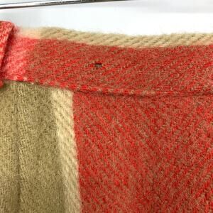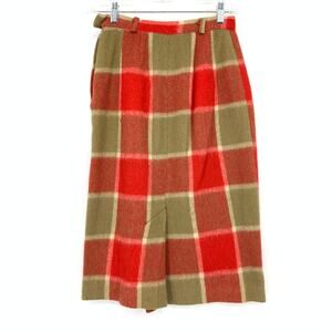 This vintage wool skirt features a bold red and tan plaid pattern with a soft, warm weave and a classic high-waist silhouette. The structured wool exterior pairs with a smooth interior lining for comfortable wear and a clean drape, while the mid-length cut offers a timeless winter look. With its rich color palette and traditional patterning, it pairs beautifully with sweaters, boots, and coats for a cozy, heritage-inspired outfit.